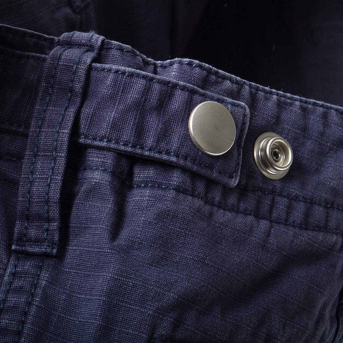 Snap closure waist with zip fly